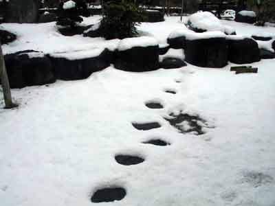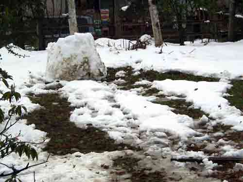| お庭で雪だるまなぞ作っている人がいる | 裏庭は雪が消えない状態 |
