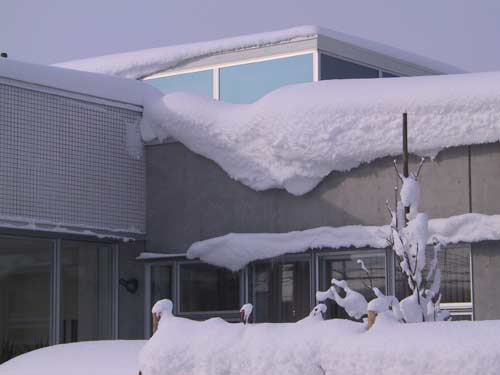 | 歩ってる人も埋ずまる位 | たらーんと庇から垂れ下がり | 診察室部分が特にあびない | ウッドデッキ消失! |