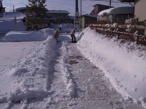 | 朝は猛吹雪 | 雪がけむみたいに舞う | クリニックは晴れている | スタッフ総出で除雪 | 6時でも明るい |