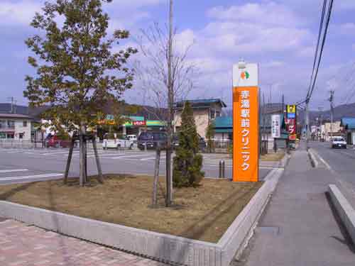 | 雨に濡れるクリニック | パラのキャノピーを模した駅舎 | 駅前通り | 我らがクリニック |
