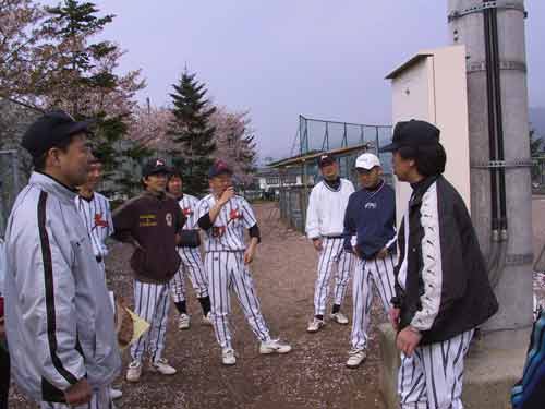 | 三々五々集まる面々 | サインを説明する監督、誰も分らず | あびない!死球かっ!? | 妙なサインで負け、俯き乍帰る |