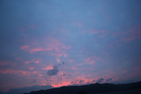 | ハッツキ山を照らす光芒 | 美しい夕焼け | ここが会場 | 某先生はズエットか |